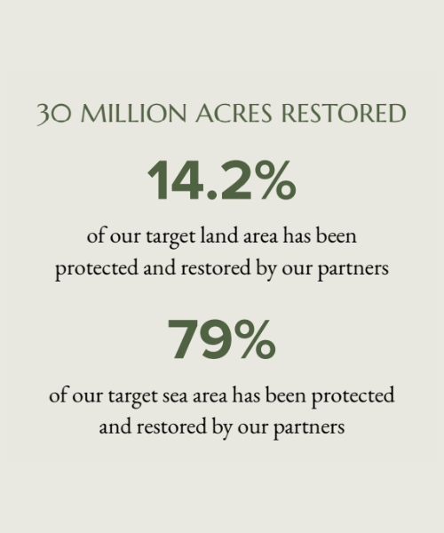 - Contribute to the restoration of 30 million acres of wild land and sea.